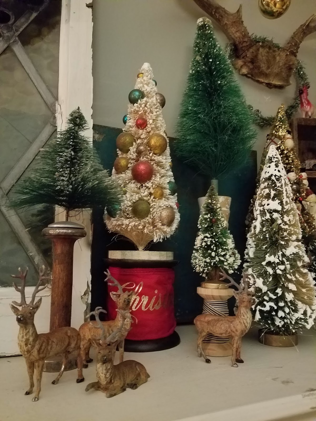 I realized as I was packing away Christmas last year that I had developed quite a vintage Christmas tree collection (all but a couple are vintage, anyway), and I thought maybe I should display them all together, so I did that this year, which I've enjoyed. I like my little Reindeer herd as well.